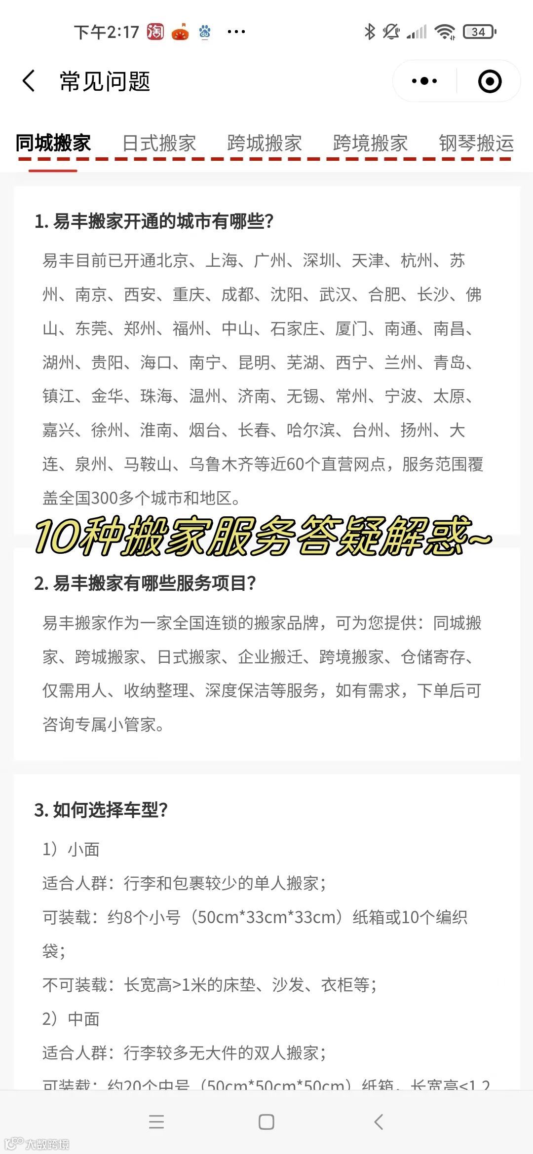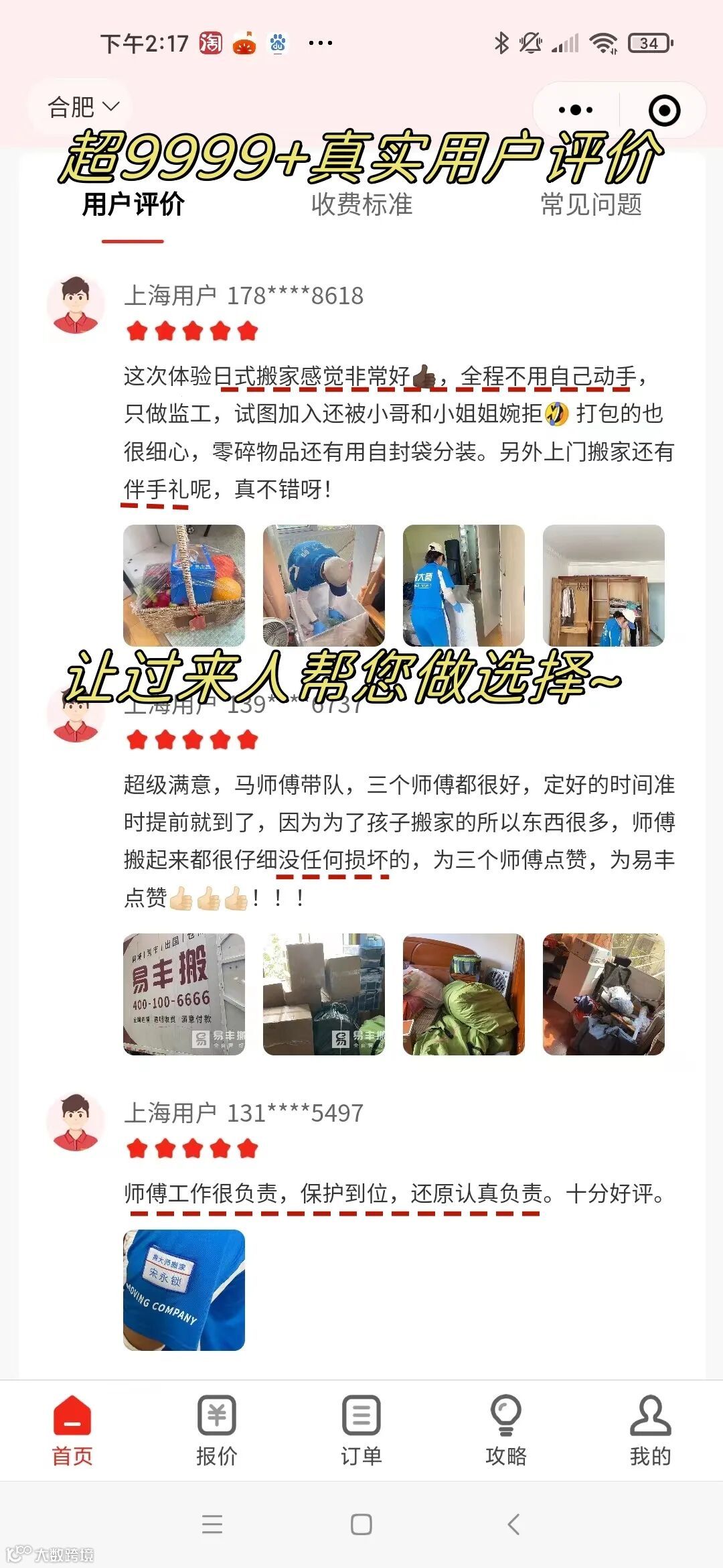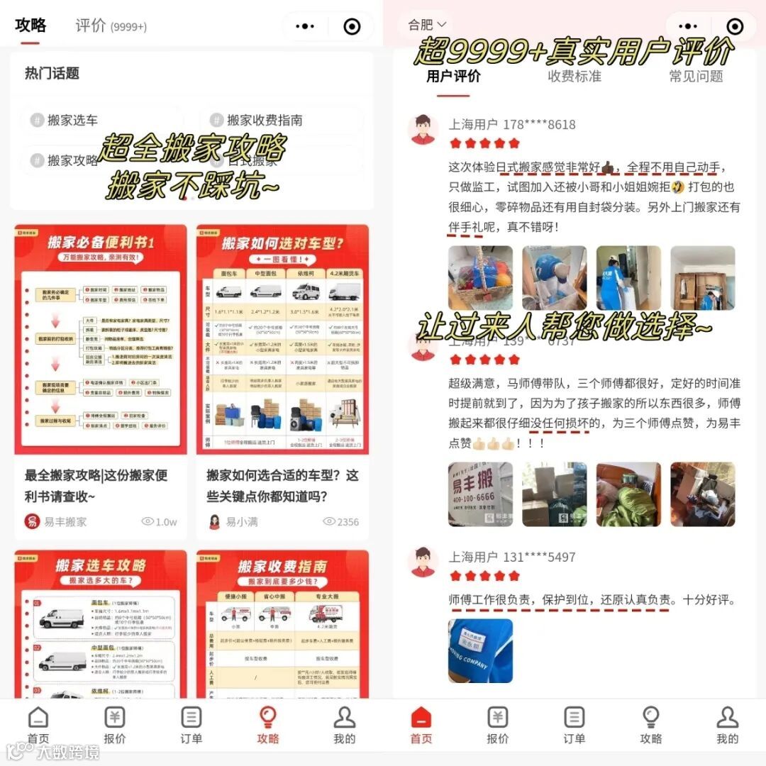 『易丰搬家』 小程序升级啦! 🎉🎉🎉 快来探索3.0版本吧 ⇩⇩⇩ PART.01 『功能更丰富』 👉新增「仅需用人」、「收纳整理」、「高端保洁」等业务预约入口; 👉易丰服务流程配上视频和图片讲解更直观~ 👉选定搬家类型后,首页下滑底部展示「用户评价」、「收费标准」、「常见问题」,所有疑问迎刃而解 ∨左右滑动查看更多功能∨ 👉新增「搬家攻略」板块,各类详细搬家攻略可供参考,超9999+真实用户评论,让过来人帮您做出正确选择。 PART.02 『报价更清晰』 输入地址直接获取各类车型报价,收费标准明码标价。 ∨左右滑动查看收费标准∨ PART.03 『下单更便捷』 首页直接进入「同城搬家」、「日式搬家」、「跨城搬家」三种常见类型的预约入口,下单更便捷; 新增「额外费用」,可灵活添加“加师傅、加中转、买纸箱、打包服务”等额外服务,确定后支付10元定金(定金可随时退)即下单成功。 下单成功后,新增可修改或取消订单,还可一键联系师傅和专属客服。线上线下报价一致,服务结束可在线支付尾款。 ∨左右滑动查看下单步骤∨ PART.04 『优惠更劲爆』 👉大额新人红包礼加码,搬家更优惠! 👉搬家套餐价格更划算,轻松实现“百元搬家”! 👉喊好友砍价,有机会享0元搬新家! END 还等什么? 速速开启搬家新体验吧!
