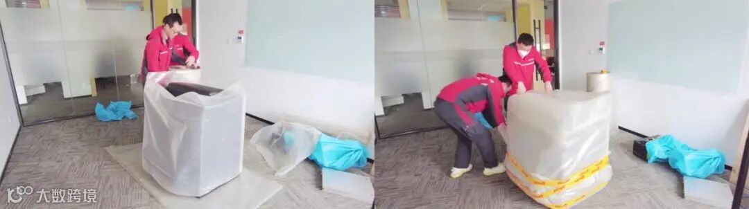 率先进攻的是难度最大的员工办公区,办公桌椅全部先进行拆卸,然后使用气泡膜多层包裹,防护性超强。