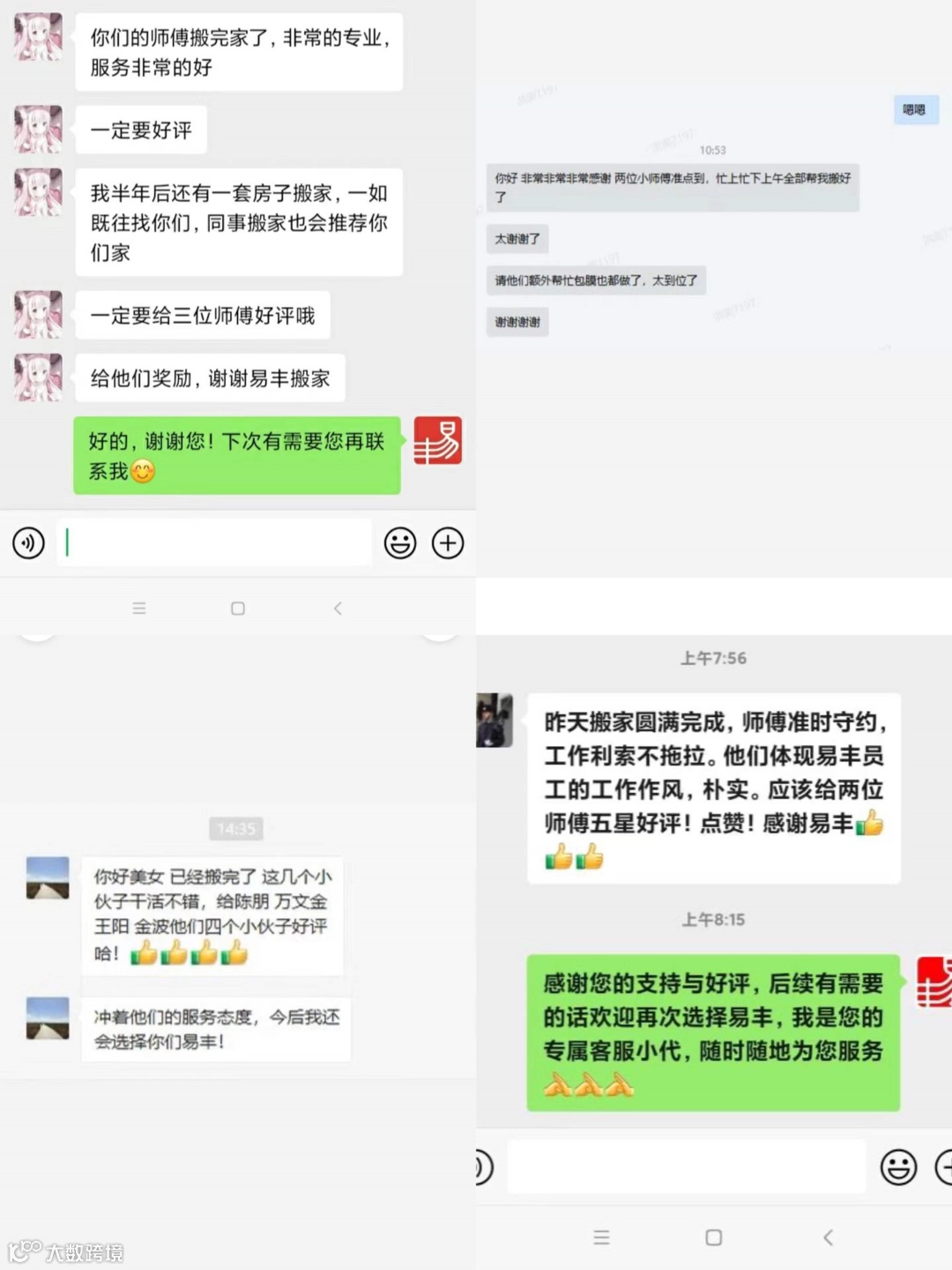 在这一点小丰可以拍拍胸脯,夸夸我们易丰搬家,我们公司在搬家之前会与顾客签订专属搬家合同,并与平安保险、太平洋保险等大型保险公司合作,售后理赔更有保障。