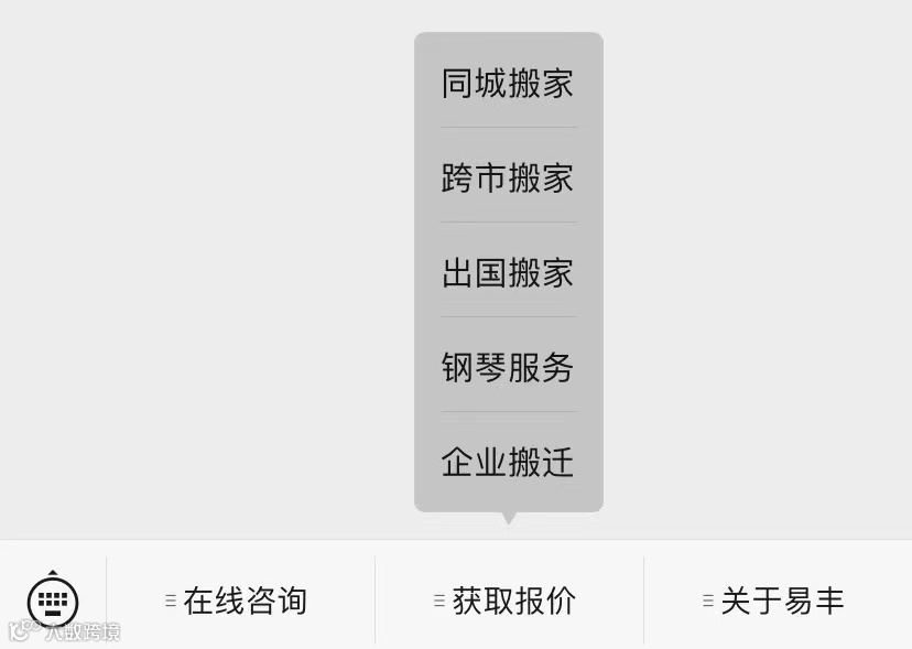 ①微信小程序搜索【易丰搬家】,或者关注【易丰搬家】微信公众号,点击菜单栏【获取报价】,即可直达下单页面!