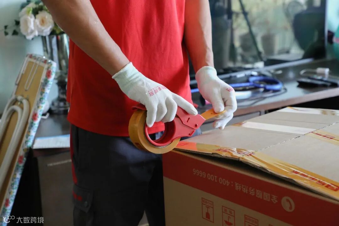 物品包装好之后,还需要用胶带对纸箱进行封口,易丰搬家师傅根据多年经验使用封箱器按易丰独创“田”字封箱法密封纸箱上部,这样更加安全、牢靠。