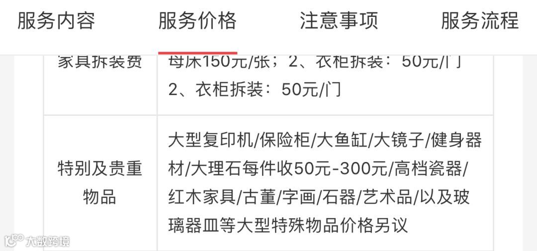 当然,作为搬家公司,不做低价营销,收费明细一目了然,也非常重要。尤其是大件家具家电拆装收费这块,要具体到1.2米床多少钱,1.5米的又是怎么收费。