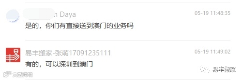 易丰搬家有没有深圳直接到澳门的业务?