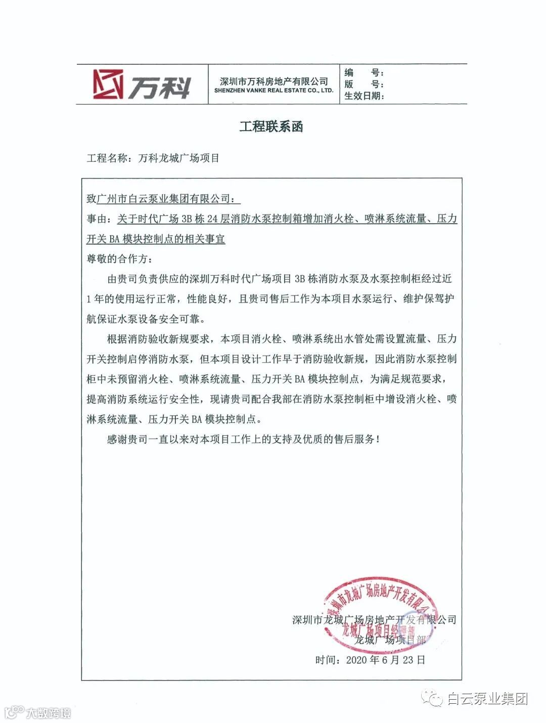▲白云泵业合作客户