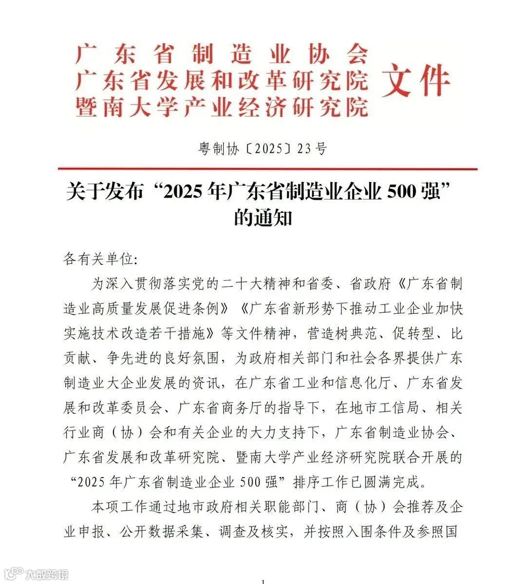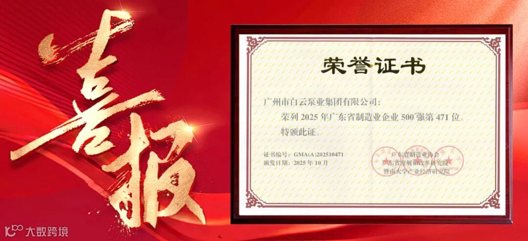 近日,“2025年广东省制造业企业500强”榜单正式发布,白云泵业集团凭借三十余年深耕制造业的深厚底蕴与雄厚实力,再次荣耀登榜!