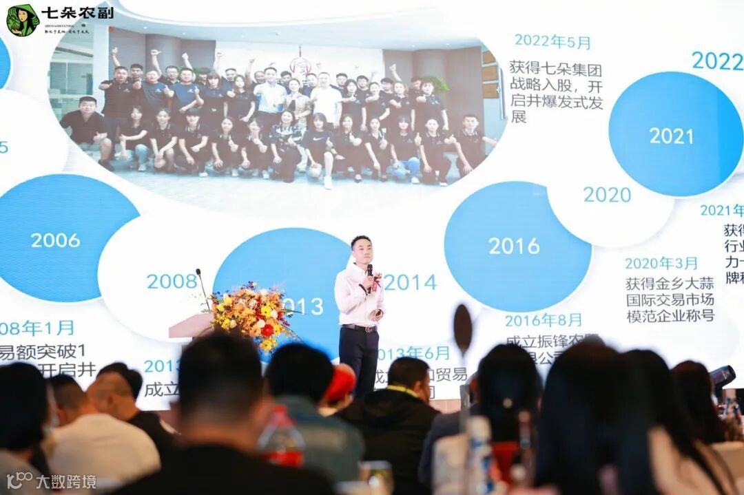 在现场掌声和欢呼声下,七朵农副兼集团市场执行CEO杨明先生发表了热情洋溢的致辞,向到场参加开业仪式的所有人员致以深深的谢意,并详细介绍了认领一瓣蒜品牌及七朵(浙江)数字农业科技发展有限公司的发展历程。