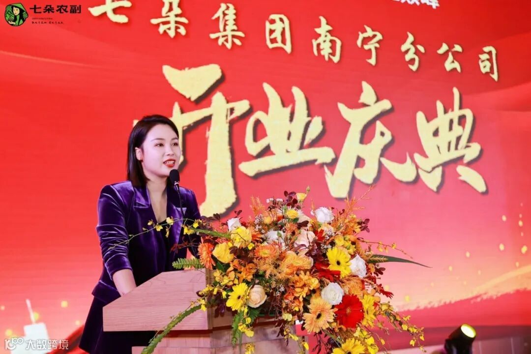 随后,七朵(浙江)数字农业科技发展有限公司董事长杨梦婷女士也作了精彩致辞,她首先对来到现场的所有领导和嘉宾致以真诚的谢意,表示正是有了在座的各位及未到现场的家人,才实现了七朵这几年来实现的一个奇迹。在七朵这艘已带有护城河的甲板上,我们一起乘风破浪,迎接新的篇章,最后祝南宁分公司开业顺利,祝大家身体健康,家庭幸福美满。