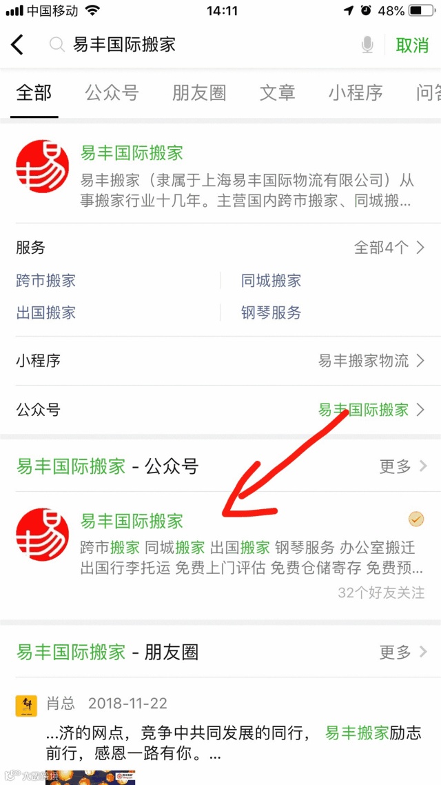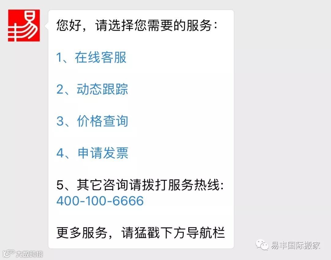 关注公众号“易丰搬家”or微信输入:YiengMoving,关注以后就可在公众号中获取报价咯!