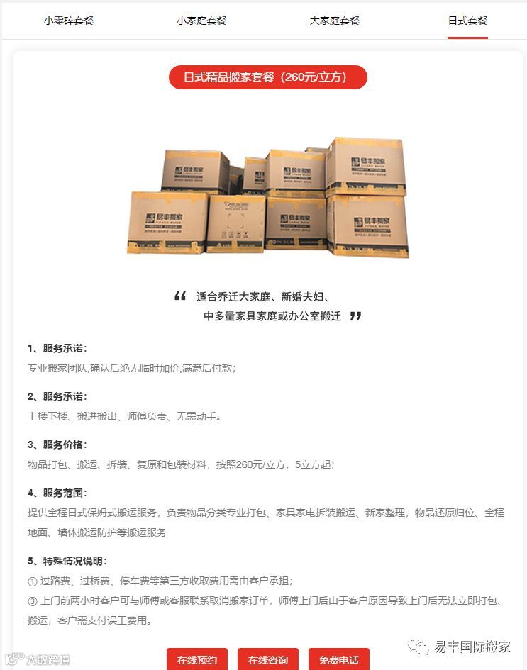 6.材料费:针对于大家庭、办公室、工厂等物件很多的情况,对物品打包有特殊要求的,会收取同城打包材料费用的。