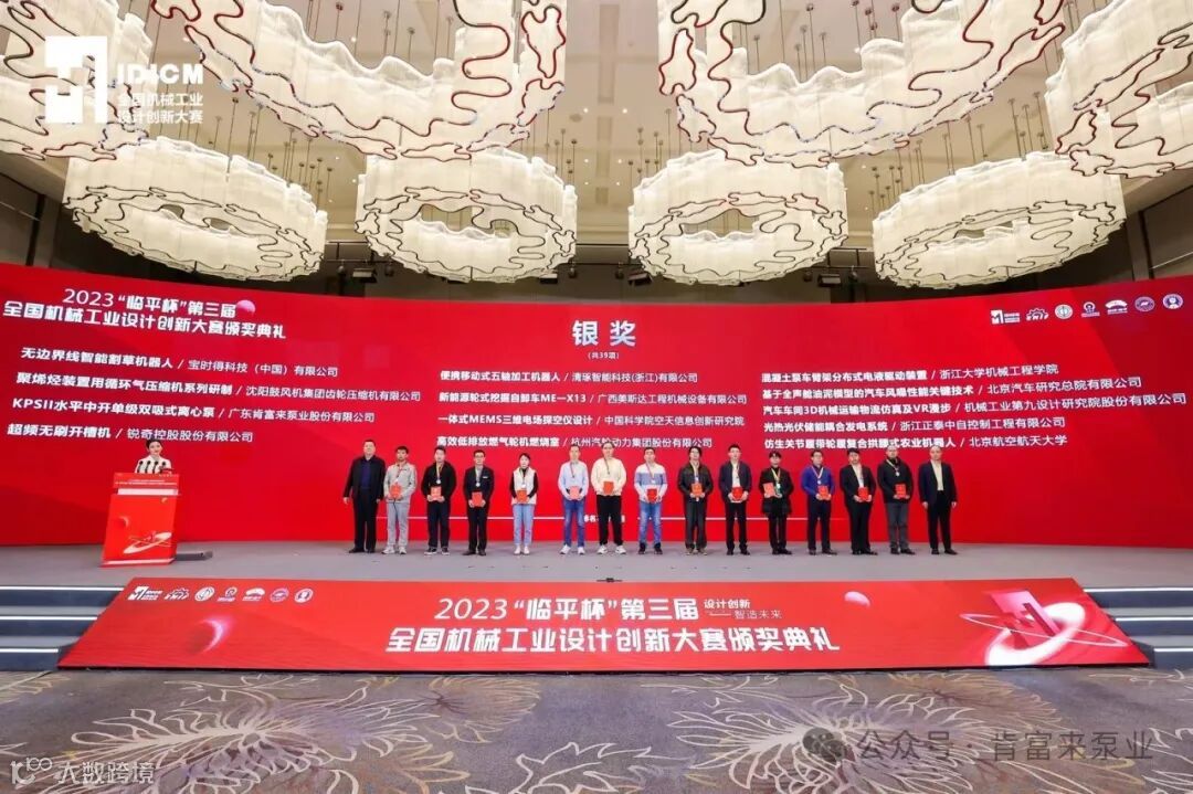决赛异常激烈,氛围精彩纷呈。最后,2023临平杯第三届全国机械工业设计创新大赛组委会评选出:全国获金奖的企业、机构和高等院校有21家,获银奖的40家,获铜奖的60家。广东肯富来泵业股份有限公司成功斩获泵行业唯一的银奖。
