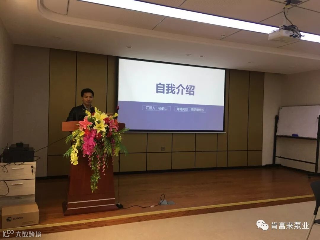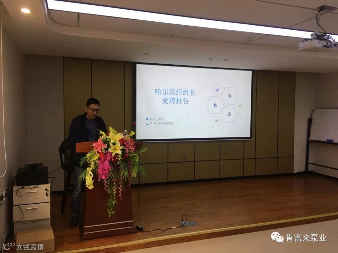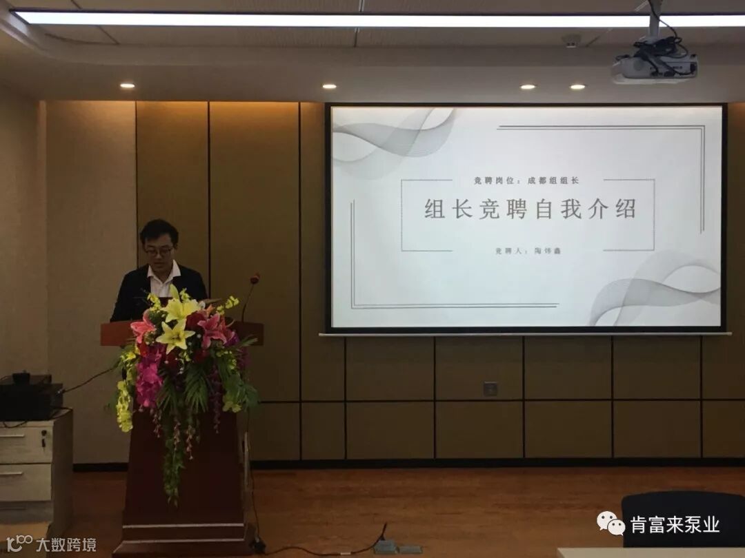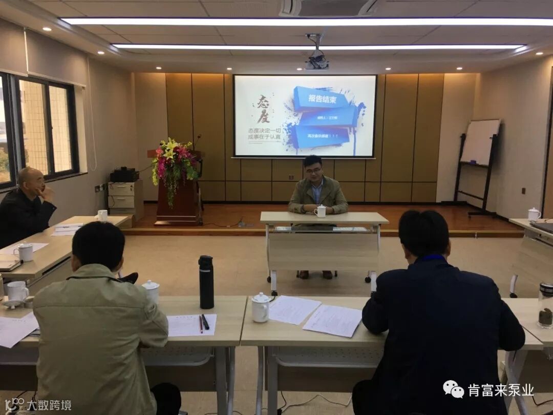 为选拔人才、鼓励德才兼备的人才脱颖而出并形成组长岗位良好的竞争机制,肯富来泵业于2018年12月25日在总部举办了首次业务组组长竞聘会。本次竞聘共有9名业务员参与竞聘5个组长岗位,在“公开、公正、公平”的原则下,雷立明、陶炜鑫、王宁路、庄益会、杨醉山五位竞聘者脱颖而出。竞聘成功的竞聘者充分展示了自己的能力,获得评委们的一致认可,把握住这次竞聘的机会,他们今后将在新的岗位上接受更大的挑战;而本次竞聘中遗憾落选者,也很好的展示了自我,在很多方面得到评委们的肯定,同时也认识到自己的不足,找到了今后自己的努力方向,积累了宝贵的经验。希望在今后的组长竞聘中,有更多的人踊跃参与竞聘。