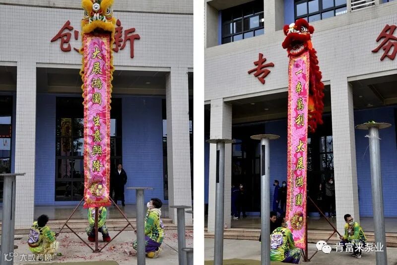 当天上午,在公司生产区和商服区分别进行了醒狮采青表演,董事长兼总经理陈迪等公司领导出席活动,向全体员工和客户、供应商朋友致以新年祝福。