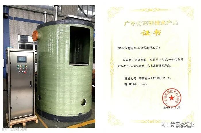 经过两年多的攻关,工业泵公司顺利地完成了该项目,并开发出“互联网+智能一体化泵站”。该泵站是集成式一体化泵站,以复合缠绕玻璃钢筒体为主体,内设潜污泵、自动耦合装置、管道、阀门、控制系统、爬梯、维修平台等,根据用户需求还可在进水管道后加设粉碎型格栅,筒体上设有玻璃钢顶盖,是把所有设备及仪器集成在一起的成套设备,具有使用方便、质量可靠、土建作业量少、容积优化、成本低的优点,成为替代传统排水泵站理想方案。可广泛应用于市政工程的污水泵站、排水泵站、合流泵站等中途泵站,以及工业或其他一切不能依靠重力作用直接将废水排放到污水处理系统的场合。先进的技术,优异的产品性能,“互联网+智能一体化泵站”还被认定为广东省2019年高新技术产品。