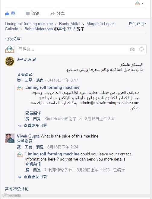 我们这个FB的PAGE是卖roll forming machine,一个下午就有很多人在FB上面联系我们。B2C今天在亚马逊是完全爆了,这两个月很多都不给开帐号了,但不建议工厂直接去做C端,我认识一些朋友,在亚马逊还是有一定的实力,他们开一个店才三个月,就投入了过百万。