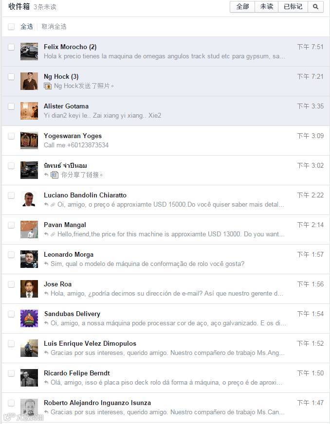 FB上面的营销还是很成熟的,客户会通过贴子点赞或者留言给你,也有发站内信的。