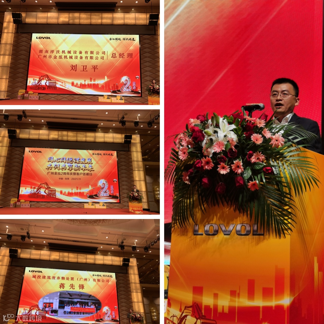 广州市金泓机械设备有限公司总经理刘卫平女士为会议致辞,这一路我们风雨兼程,感谢潍柴雷沃重工集团对广州金泓的大力支持,感谢各位合作伙伴的鼎力相助,更感谢广大客户对我们的信任和认可!未来广州金泓将整合客户,建立资源池,让各个领域的客户共享信息共同交流,携手紧抓粤港澳大湾区建设机遇,深度布局,一同作为大湾区建设的弄潮者,和衷共济,互利共赢!