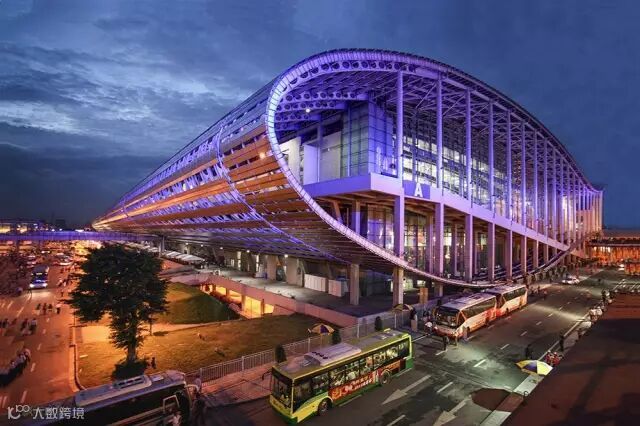 ↑琶洲展馆位于广州市海珠区琶洲岛,广州琶洲国际会议展览中心。琶洲展馆首期占地 41.4万平方米,建筑面积39.5万平方米,一、二层展厅13个,展示面积约13万平方米,室外展场面积2.2万平方米,于2002年底正式投入使用,二期展馆位于一期东面,延续了一期飘逸的造型,现代的风格,并通过平台相连。