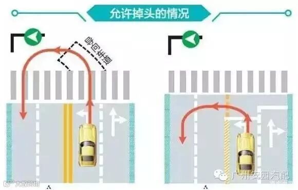 如果左转车道停止线前和斑马线之间是虚线,调头车辆可直接在此空间左转调头。