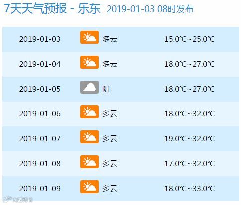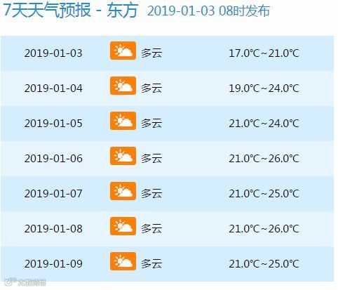 东部,阴天间多云有小雨,最低气温19-21度,最高气温25-27度