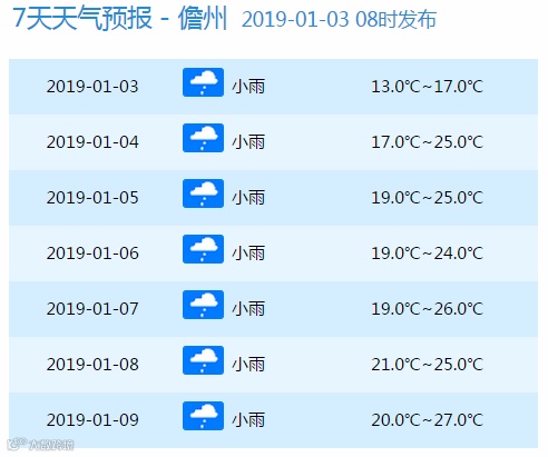 西部,多云,局地有小雨,最低气温19-21度,最高气温25-27度