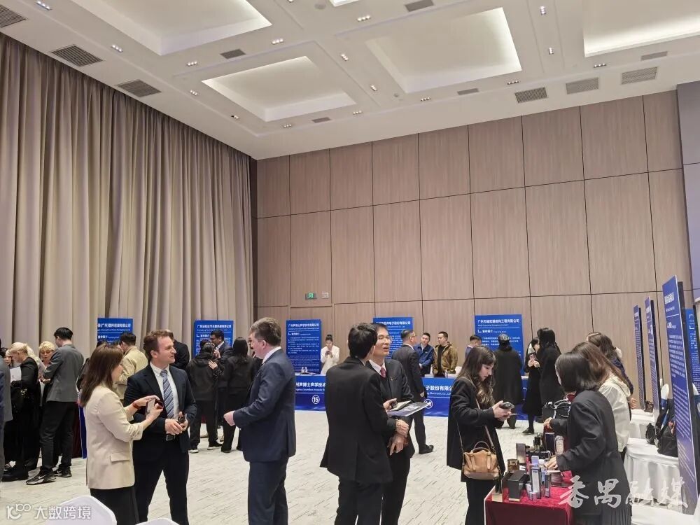 为放大宣传展示效果,活动现场设置了番禺产品展示区,营造专业洽谈场景。18家番禺企业携照明灯光、皮具箱包、环境隔音、医疗器械等优秀“番禺造”产品进驻活动现场,企业代表们在展品旁向外国友人介绍产品,洽谈气氛热烈。番禺企业与境外机构代表现场达成多项互访意向,为后续务实合作奠定良好基础。