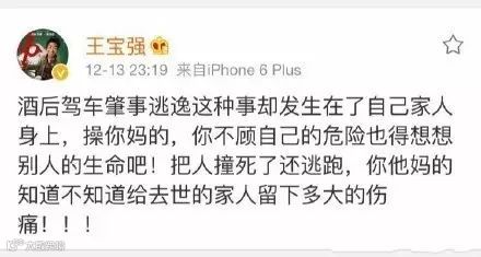 我们先来看一下事情的经过,12月13日晚,王宝强发微博称自己家人遭遇车祸身亡,怒斥肇事者酒后驾车逃逸。