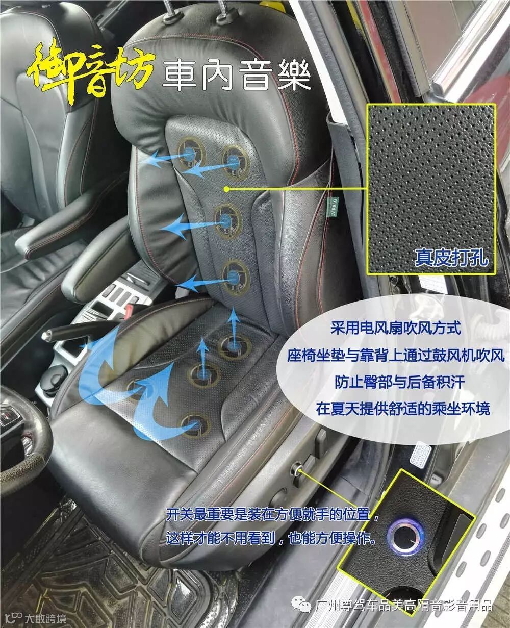 汽车座椅通风系统是新兴的一个汽车舒适实用性改装项目,也是最直接关系到驾乘者乘坐舒适性的,随着生活水平提高,汽车也不再只是代步工具,更往舒适、个性的方向发展。而车座椅通风系统其目的是为了解决高温的夏天,使用汽车时候的舒适性!