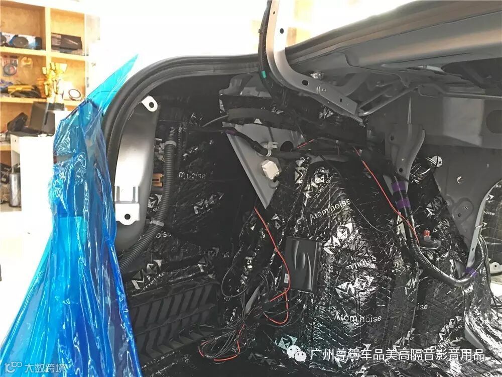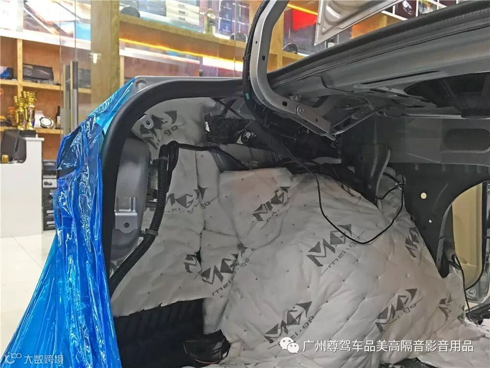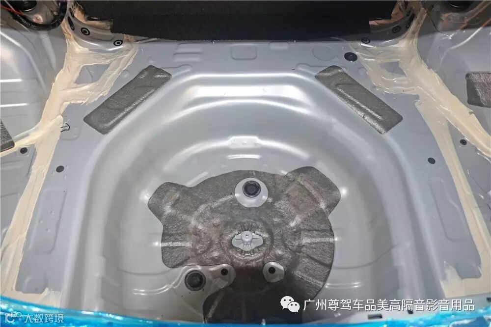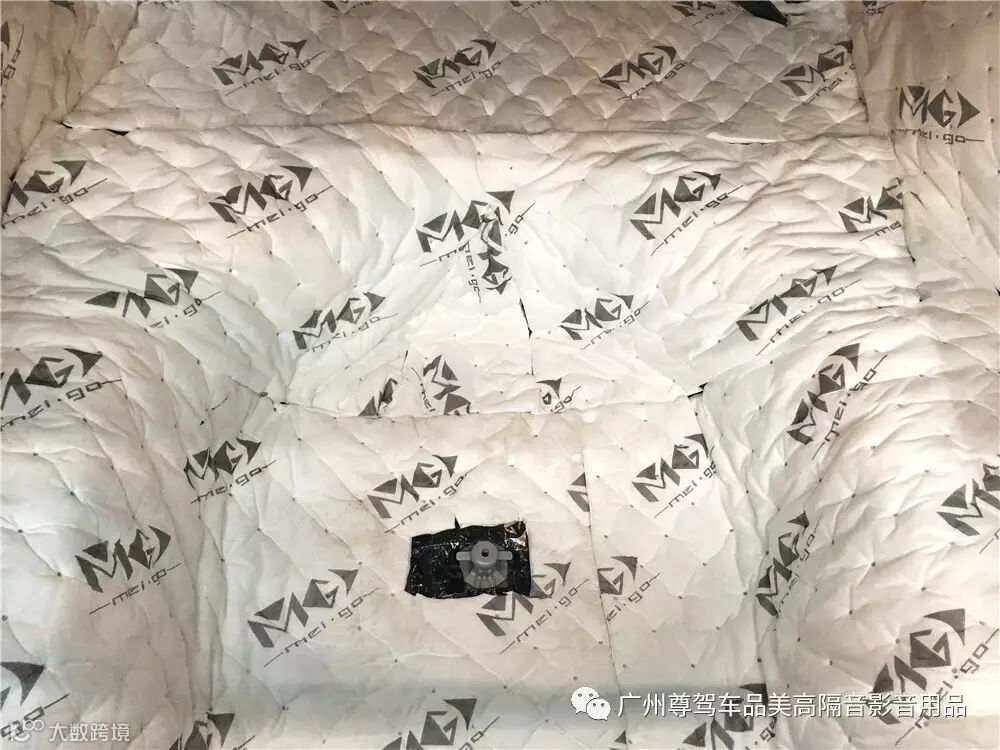 使用美高静音隔热棉按照后尾箱的形状大少进行裁剪,这样起到吸收过滤多余噪音隔绝热量的作用。