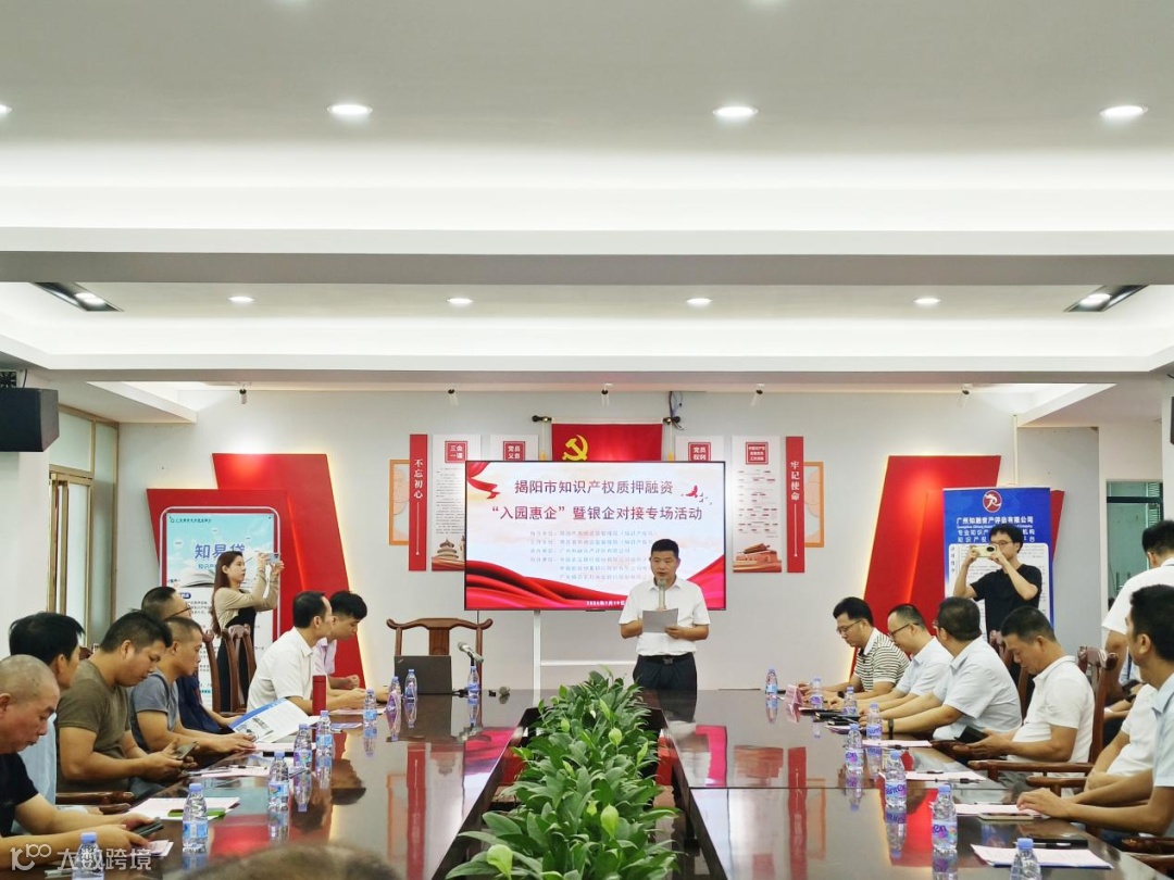 为贯彻落实《知识产权强国建设纲要(2021-2035年)》和《“十四五”国家知识产权保护和运用规划》等知识产权相关文件精神及国家省、市有关工作部署,探索知识产权融资模式创新,积极开展质押融资有关工作,助力企业利用知识产权实现高质量发展,揭阳市开展了系列知识产权质押融资“入园惠企”暨银企对接专场活动。