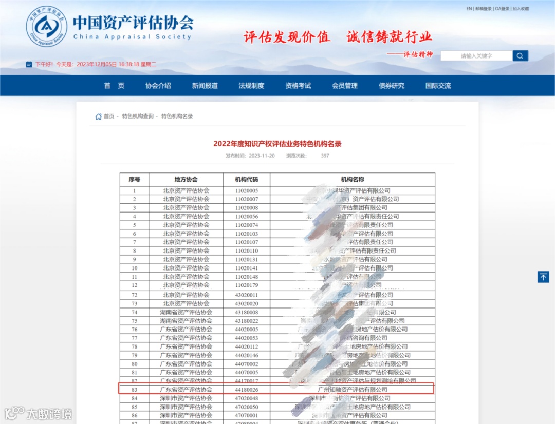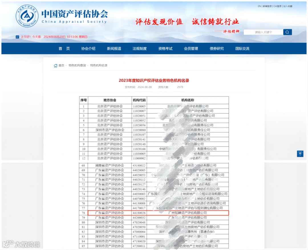 8月中评协在全国范围内筛选出97家符合条件的入选机构并公布,其中广东省11家机构入选。知融评估顺利通过复核,成为入选机构之一,截至2024年,知融评估已连续三年入选该名录。