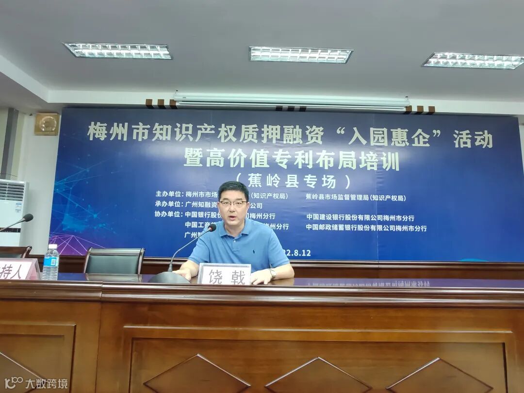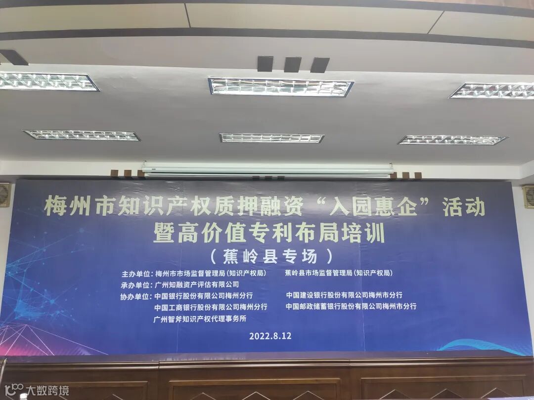 8月12日上午,由梅州市市场监督管理局(知识产权局)、蕉岭县市场监督管理局(知识产权局)主办,广州知融资产评估有限公司承办,建行梅州市分行、中行梅州分行、工行梅州分行、邮储银行梅州市分行、广州智斧知识产权代理事务所协办,梅州市知识产权质押融资“入园惠企”活动暨高价值专利布局培训(蕉岭县专场)取得圆满成功。