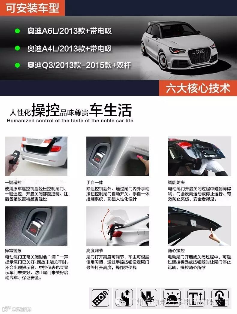 导读:奥迪专用电动尾门、适用车型奥迪A6L/A4L/Q3欢迎广大客户来电咨询4006777682、感谢广大客户对我