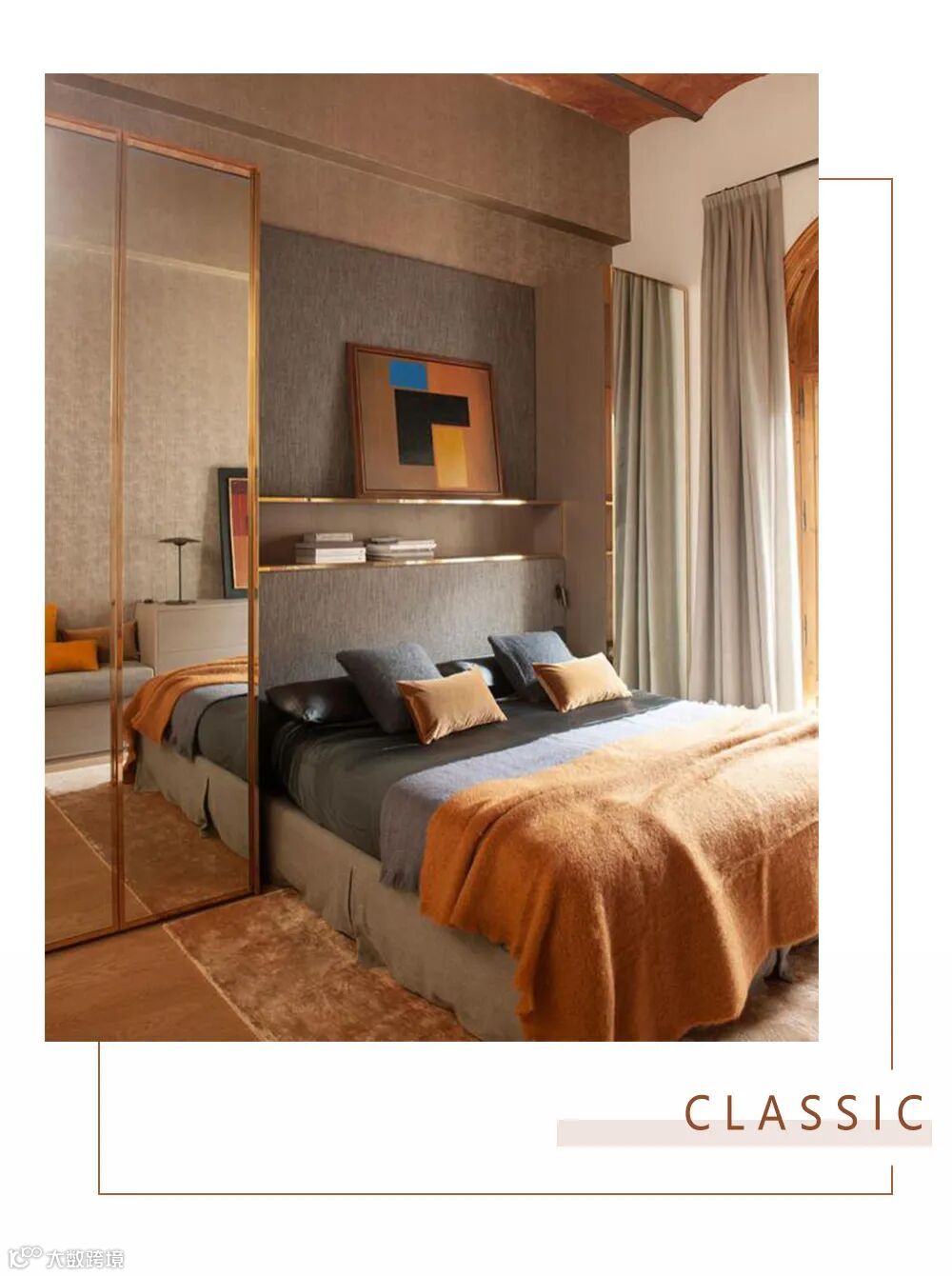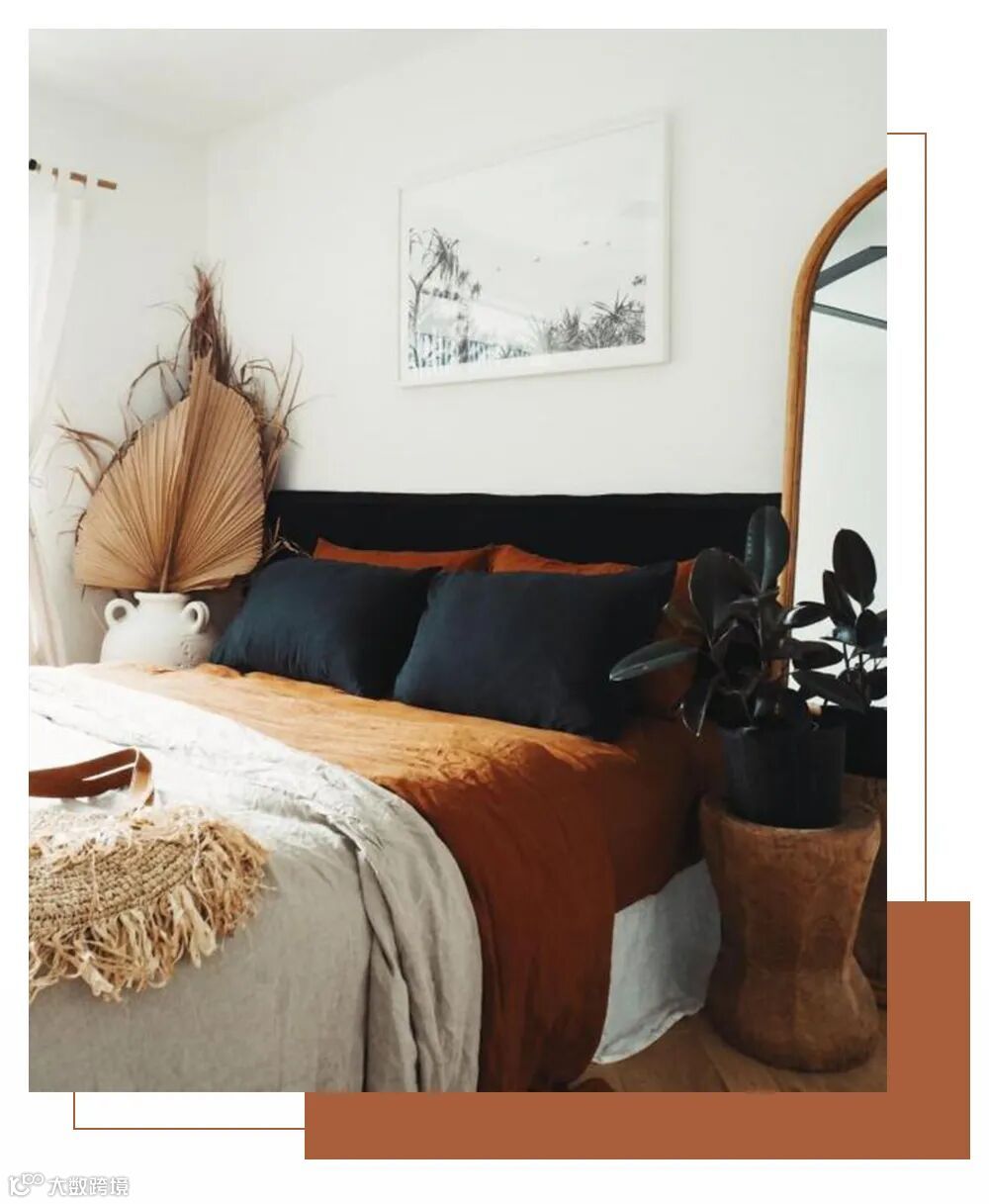 毛毯、挂画、床头板、吊柜、沙发,都是焦糖色的落脚点,它借由不同的材质和造型完成对整个空间情绪的表达,无论从哪个角度看去,都异常精致灵动。