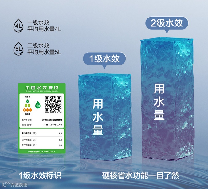 四口之家每人每天6次如厕计算,一级水效能比二级水效每天省水19.2L,一年劲省7吨。