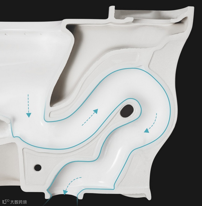 双股高速增压水流喷射顺势形成360°螺旋冲刷,S大弯管强力虹吸,冲吸双效配合,一次冲刷到位。