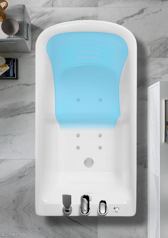 缸体底部采用座台形状,运用人体工程学设计,贴近人体靠背曲线,坐享舒适洗浴,尽释工作疲累。