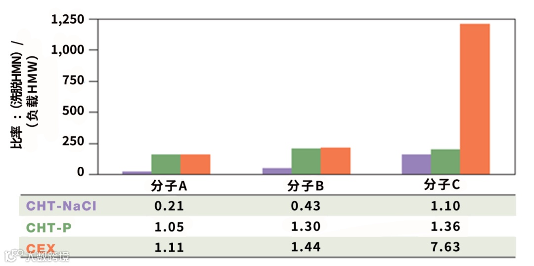 与CEX纯化比较,使用CHT可使层析诱导聚集体降低近8倍。