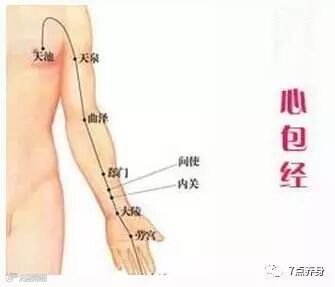 用一只手沿对侧心包经的路径,从中指尖向上沿途按揉,内关、极泉等穴重点按揉。如果觉得按揉比较麻烦,沿心包经拍打也能获得同样的效果。