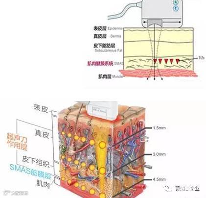 它独特的聚焦射频能量,可以越过表层皮肤,直达皮下SMAS筋膜层,使筋膜层内极性水分子发生每秒四千万次的波相共振,水分子的摩擦生热,继而将SMAS筋膜全层精准而均匀的加热,以促进胶原收缩,使分子形状发生结构性变化,表现为即刻收缩的稳定形式,即刻看到松弛下垂的皮肤收缩紧致、轮廓上提。