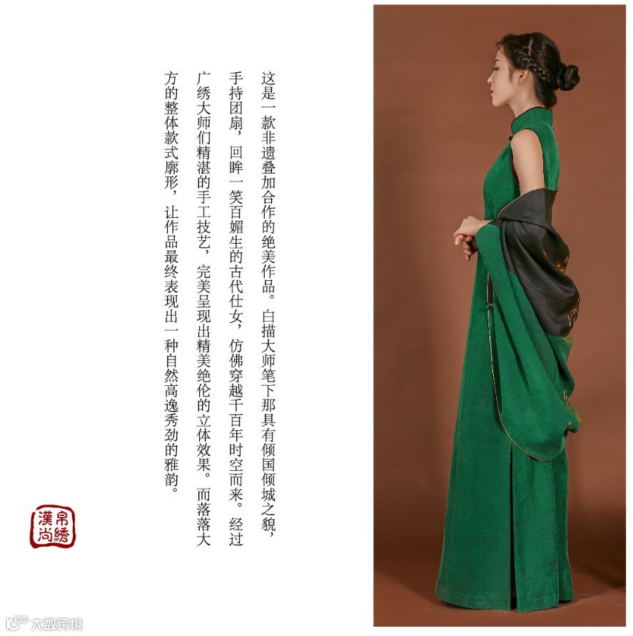 汉帛尚绣服饰品牌恪守工匠精神,应用传统非遗,从人文历史的源头活水中汲取养分,传承中华传统服饰文化的精髓,从而彰显出“中国设计,东方美学”的民族情怀。