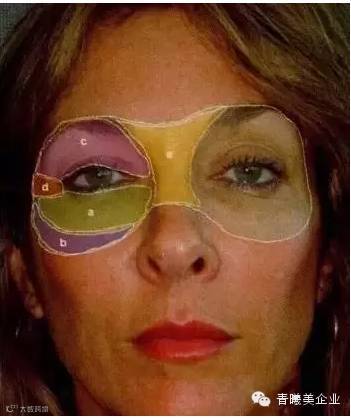 眼周不仅仅是眼睛本身,是指整个眼眶周围区域,包括下眼睑和眶下沟(包括鼻面沟);眶下软组织和颧骨突出;上眼睑,眶沟和眉毛;眼外眦侧面区域;眉间区和鼻根部。