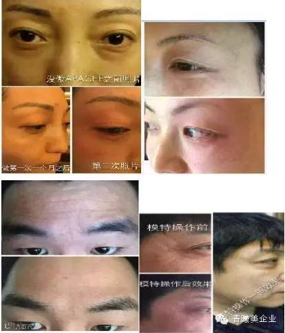 非手术治疗如肉毒素和真皮填充剂是有效的,但也有潜在风险。真皮填充剂会导致注射部位感染以及结节形成或注射点淤青。注射肉毒素的并发症包括干眼综合征,不明原因导致眼睑肿胀,泪漏(过多的眼泪产生)和巩膜症状。最近我们已经开始使用一种新型眼部抗衰技术—德国APACHE炫彩眼部时光机。
