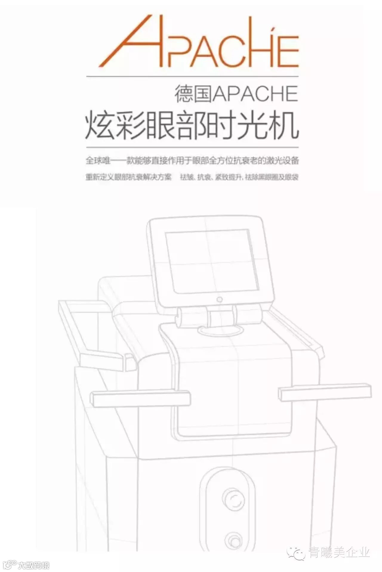 自德国APACHE炫彩眼部时光机在中国市场推出以来,获得了广大专业人士以及爱美者的好评,这项技术已经彻底改变了我们对于眼周的治疗。对眼周娇嫩部位以及难以触及的部位提供无痛、安全、有效的治疗方法,减少眼袋、光滑、紧致眼部肌肤和上眼睑提升,从而使你的眼睛看起来更大、更明亮。治疗后即刻就有明显改善,对初次治疗的顾客很有吸引力。我们这款眼部时光机是一个人眼激光,所以我们能够将激光炫彩乱序的方式直接作用于我们的眼部。