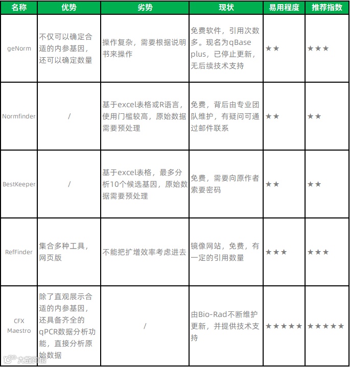 三、筛选内参基因软件/工具介绍