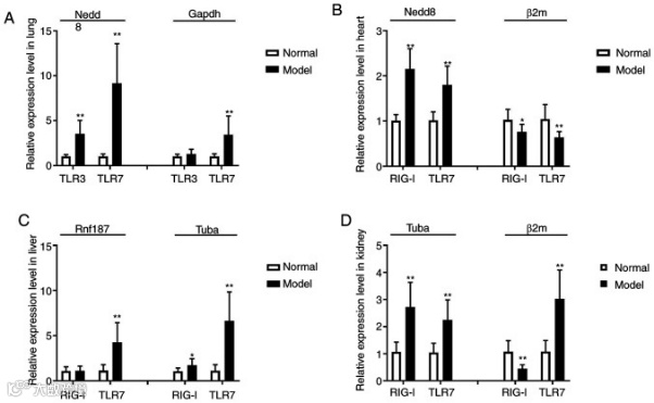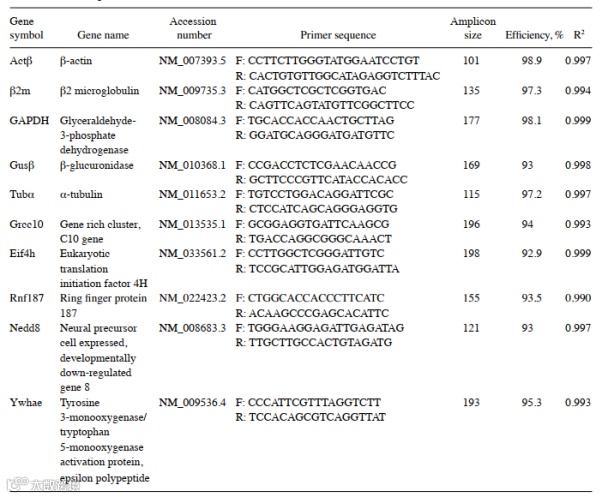 以上 qPCR 实验及数据分析表明,在研究评估 KYDS 病毒治疗的基因表达时,适当的内参基因对获得可靠的结果至关重要。目前常用的4种评估工具都可以使用,但一定要注意对内参基因进行实验验证。