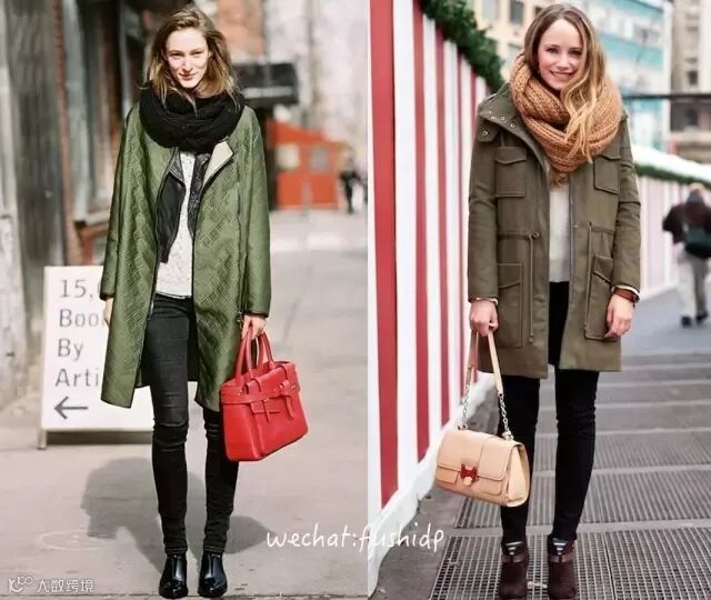 派克大衣、棉服这类外套本身就比较厚实易显臃肿,而用围脖法则可以让你的造型显得非常干练利落,毫无拖沓感。