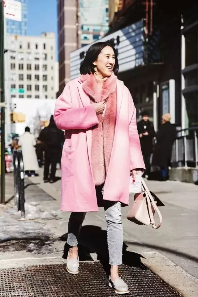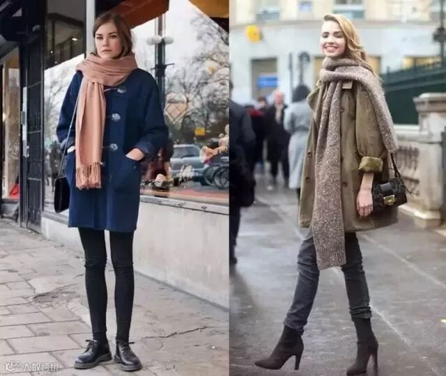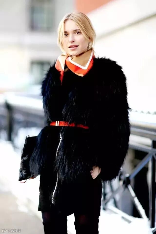 但如果你的外套是仿皮草这般保暖性强,本身却又比较蓬松显臃肿的,那就不宜再用大围巾来加持了,会让你整个人变得更壮实。