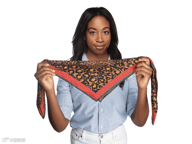 第一种是牛仔结法,多是用短款丝巾来操作。