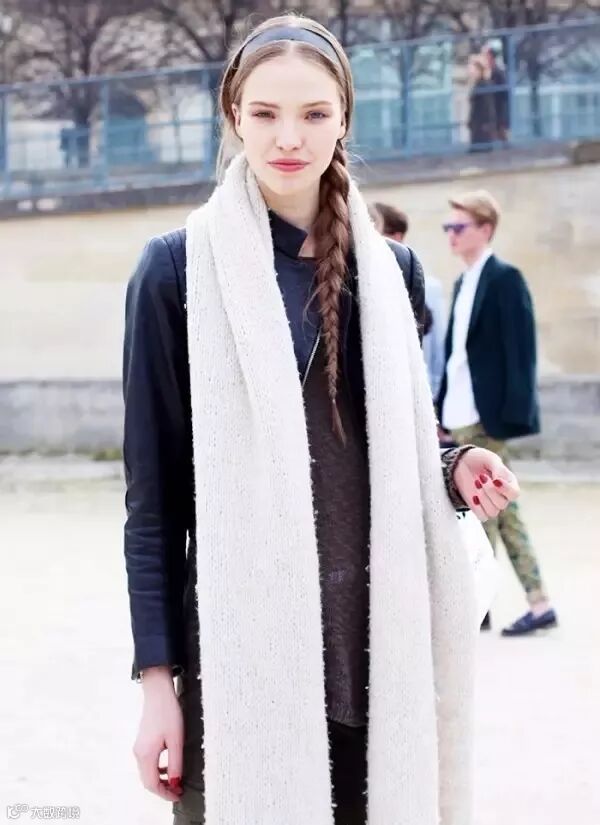 针织款围巾也是潮人街拍中出镜率非常高的一款,温暖又养眼。
