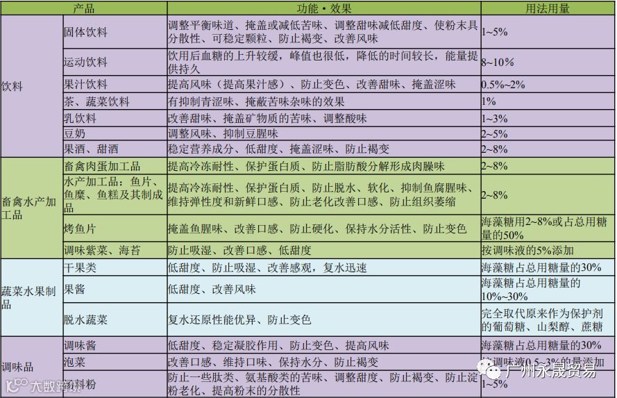 主要作用:甜度温和,明显减小甜腻感.抗老化、延长产品保存
